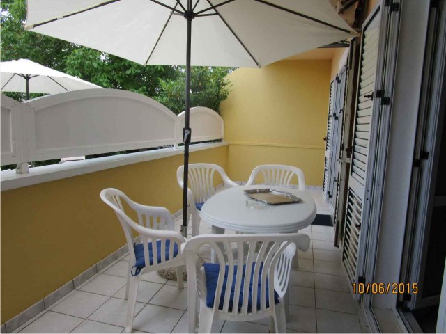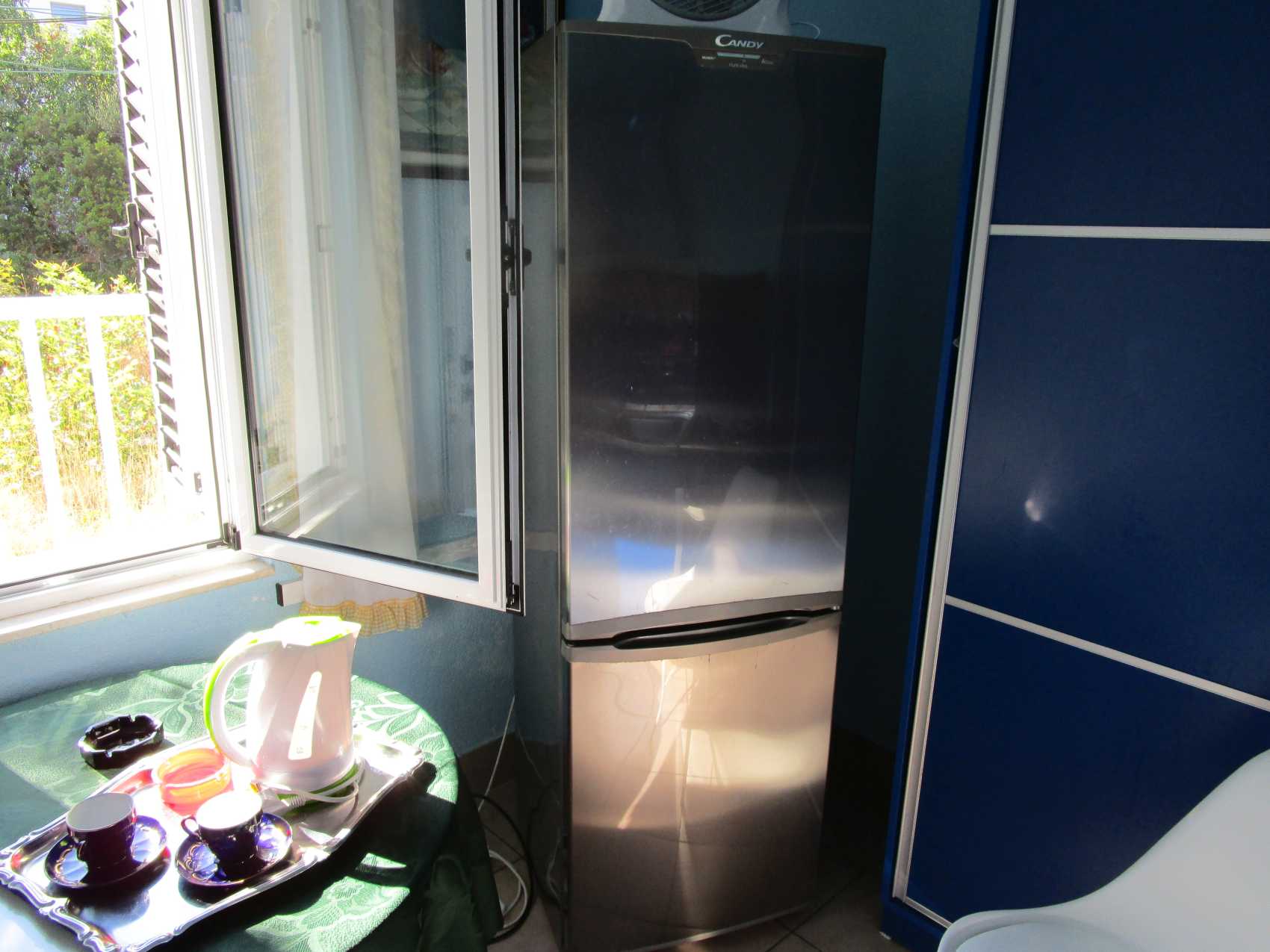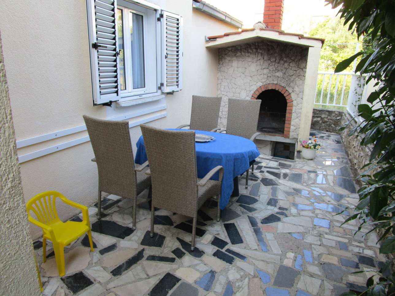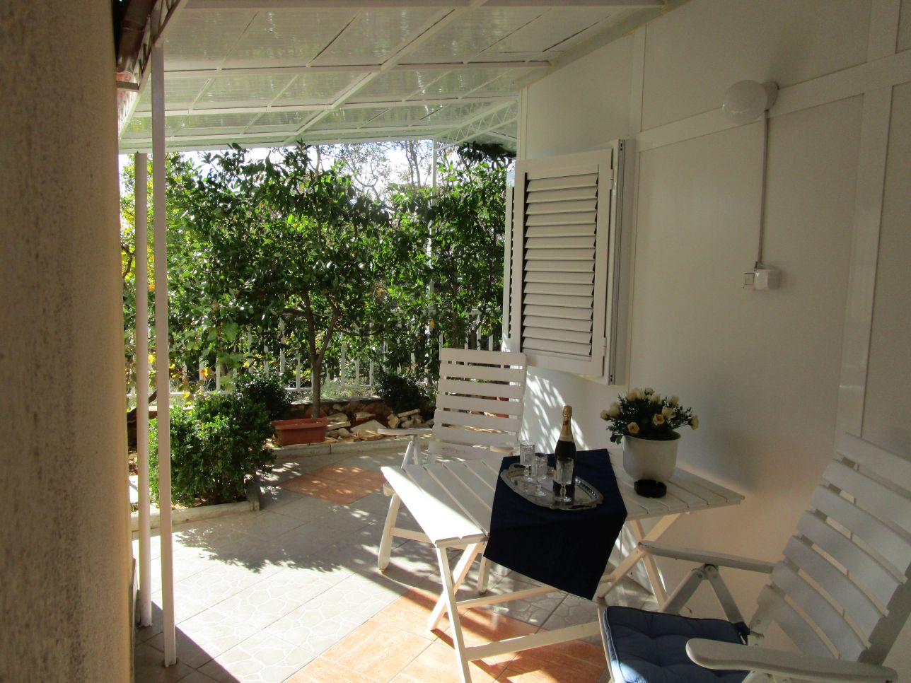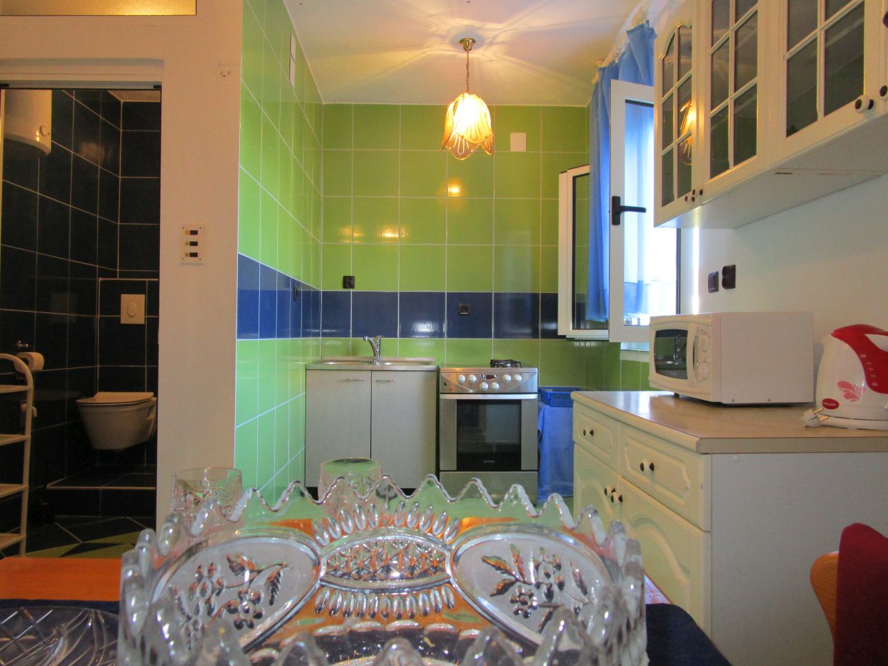 Apartman br. 1 je u prizemlju. Sastoji se od: tri sobe, 8 ležaja, površine 95 m2. Grill pred ulazom površine 10 m2. Kompletno opremljen s mašinom za rublje i mašinom za posuđe. Ima: veliku kupaonicu i toalet u vrtu, kuhinju s trpezarijom i veliku terasu.
