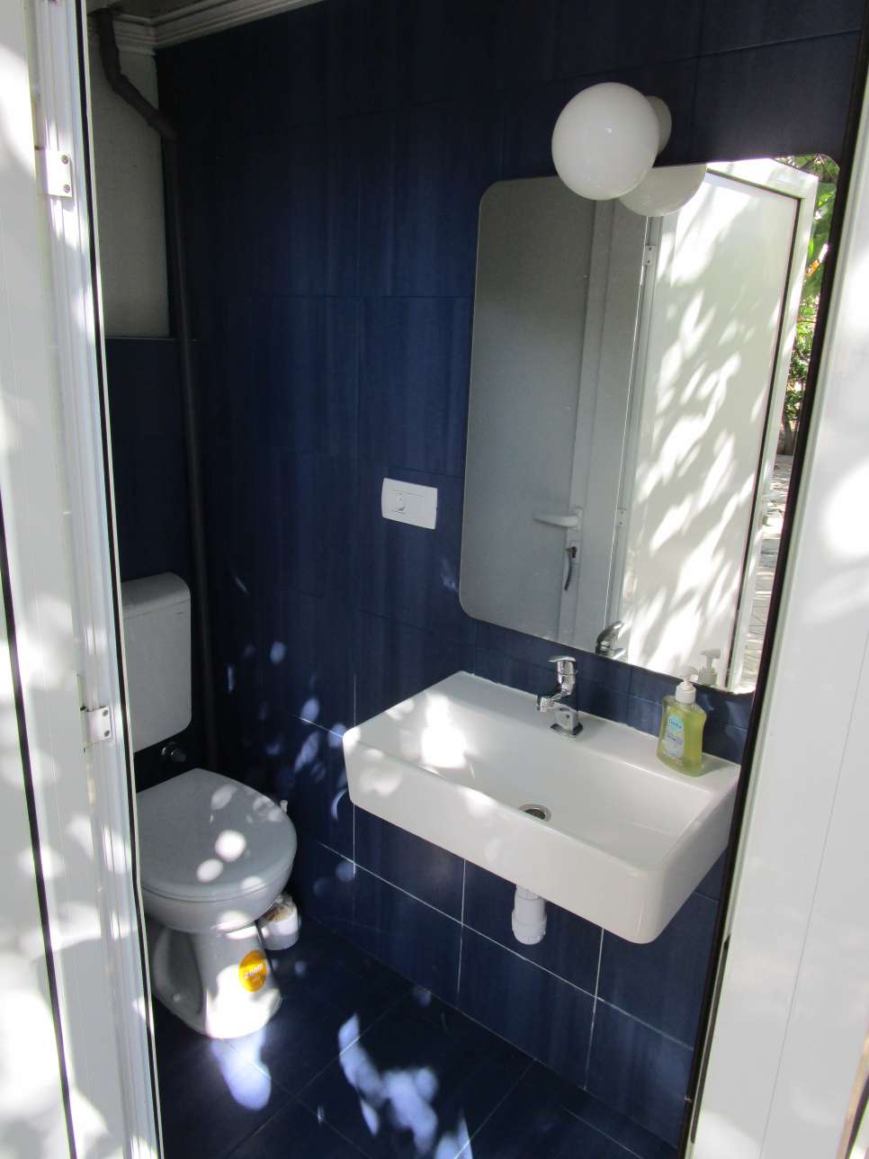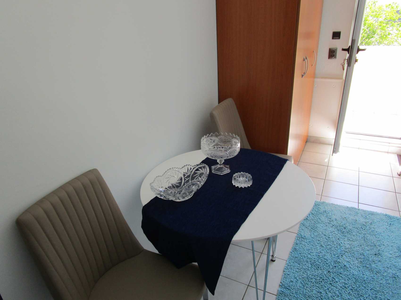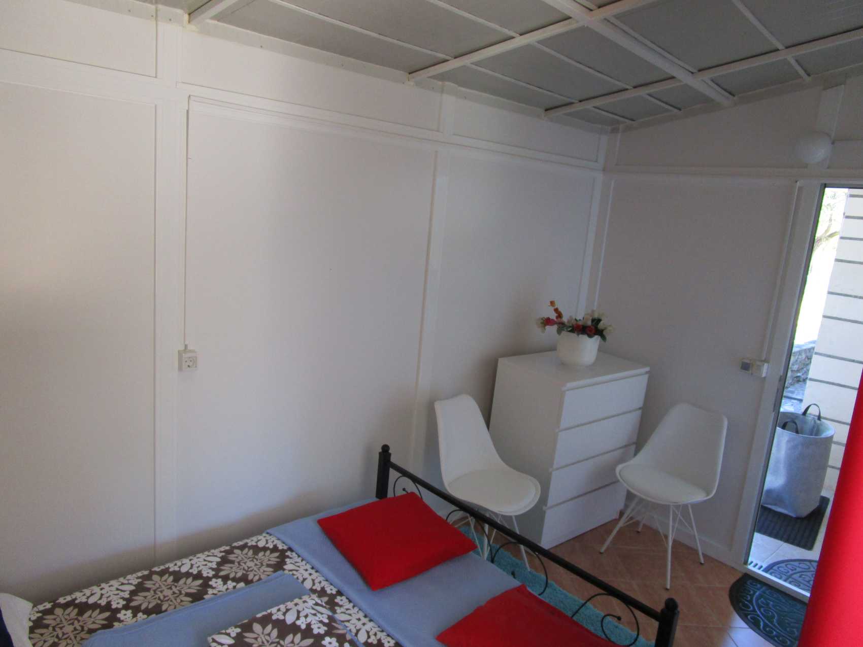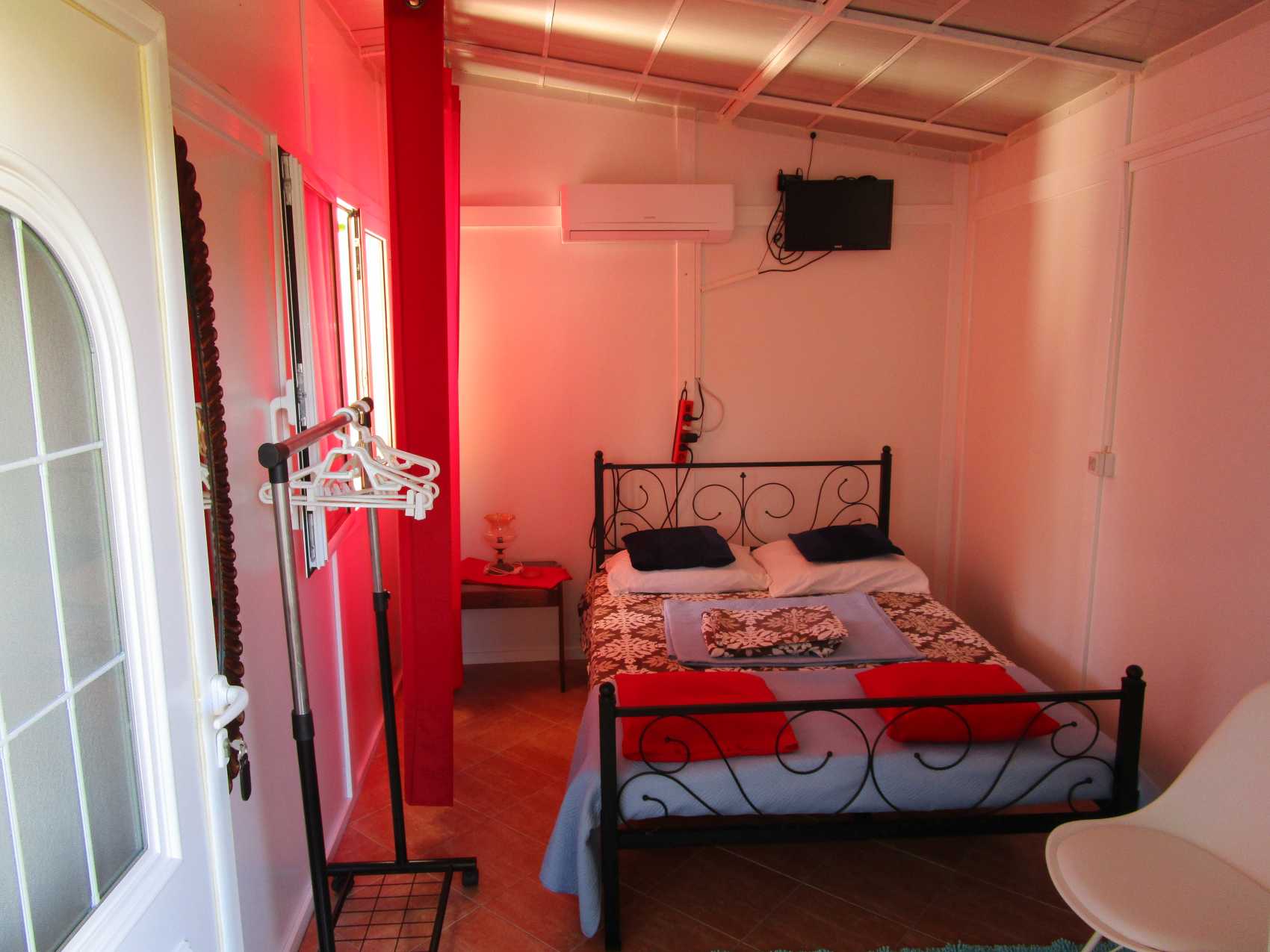 Studio u vrtu sastoji se od jedne sobe s bračnim krevetom, površine 60 m2 (tlocrt). Opremljen je perilicom za rublje i kompletnom kuhinjom. Kuhinja je odvojena od spavaće sobe, 1m udaljenosti.
