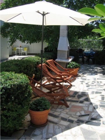 Vrt ima: 6 garnitura za sjedenje, 3 odvojena roštilja, 3 tuša, veliko parkiralište za 6 automobila i bicikle za rentanje.